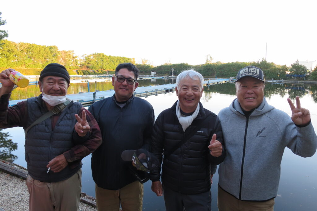 ベテラン会員の柳田さん(同日7位の好釣果!)も何故か写真撮影に参戦!?