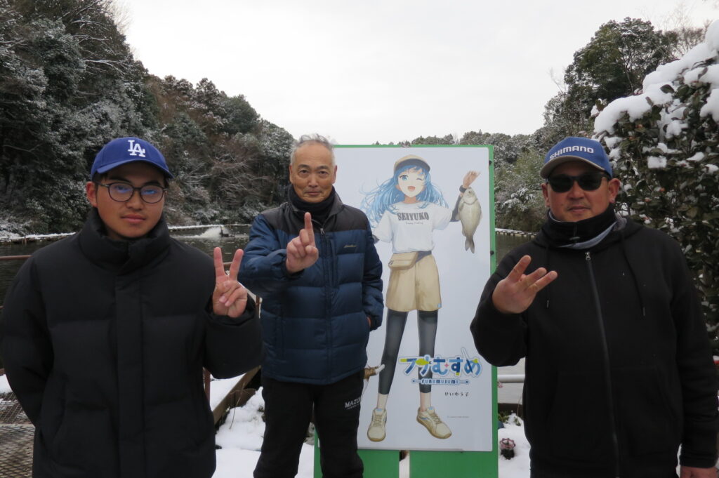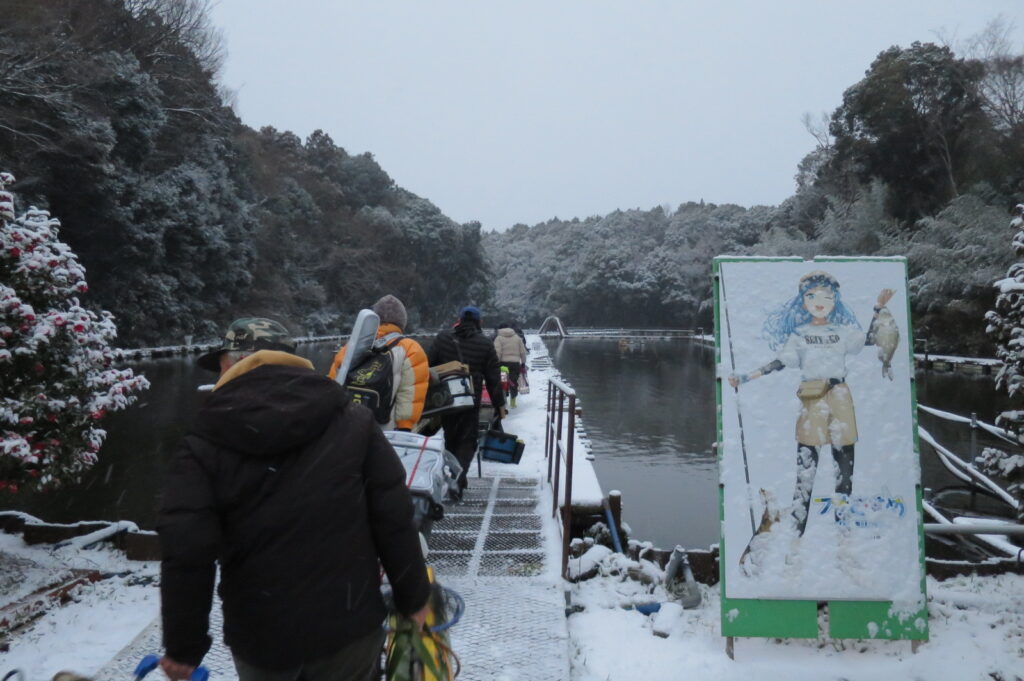 この日の清遊湖は『2026マルキューM1CUP関東地区予選』直前の日曜日であり、例年なら試釣で攻め尽くされた人災によりサワリすら出すことの難しい恐怖の例会なのですが、降雪のせいで池全体でも50人程度の入り…